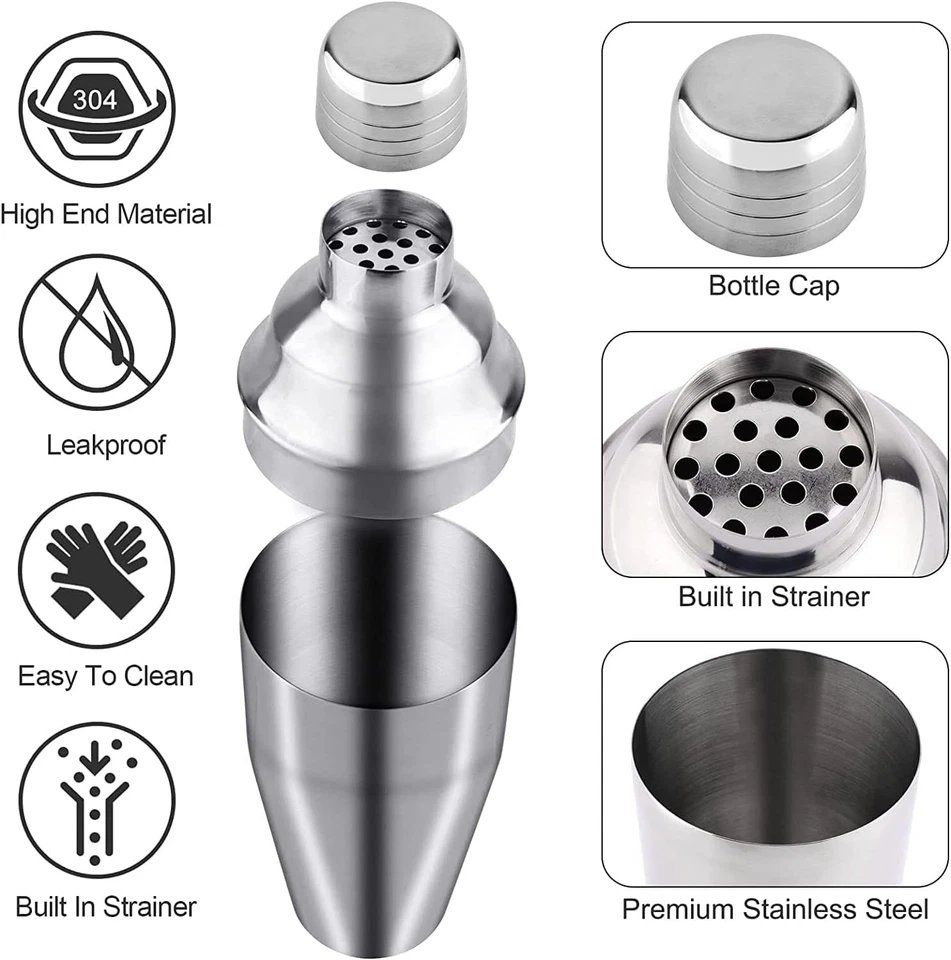 Cocktail Shaker, Large 750Ml Stainless Steel Cocktail Shaker Set with Strainer